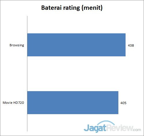Daya baterai sebesar 4850mAh yang terpasang pada tablet ini cukup dapat memberikan daya tahan hidup yang cukup lama. Untuk melakukan browsing, tablet in dapat bertahan hidup hingga 7 jam lebih dan ketika di gunakan untuk memutar film dengan resolusi HD720P dapat bertahan hidup hampir mendekati 7 jam. test ini di katakan cukup berat karena di lakukan terus menerus, berbeda dengan penggunaan sehari-hari, sehingga tablet ini mempunyai daya tahan hisup yang lebih di bandingkan test yang kami lakukan.