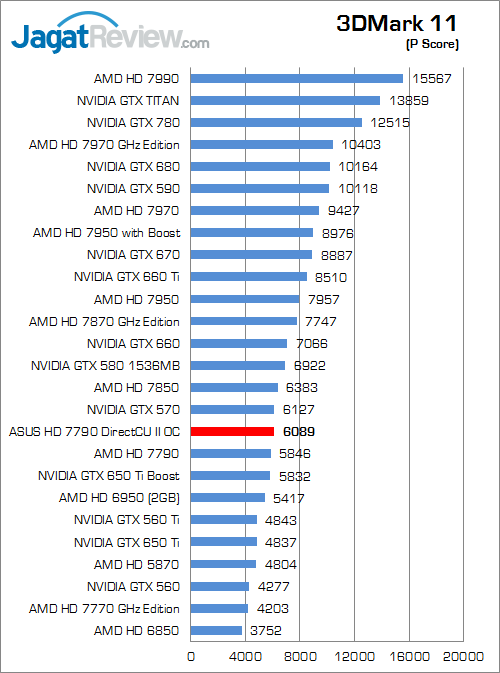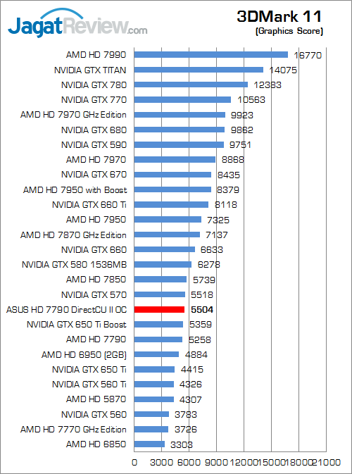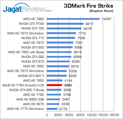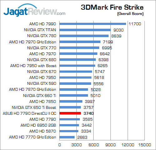 Pada benchmark sintetis terbaru dari Futuremark ini ASUS HD 7790 DirectCU II OC mendapatkan poin sekitar 4.4% lebih tinggi dibandingkan HD 7790 reference.