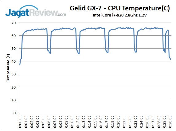 Berdasarkan pengujian yang kami lakukan, Gelid GX-7 bisa mendinginkan prosesor Core i7-930 yang kami gunakan dengan baik. Terbukti, suhu maksimal yang tercatat ketika prosesor berjalan dalam keadaan full-load berada jauh di bawah stock cooling dan suhu tersebut masih berada dalam batas aman penggunaan.