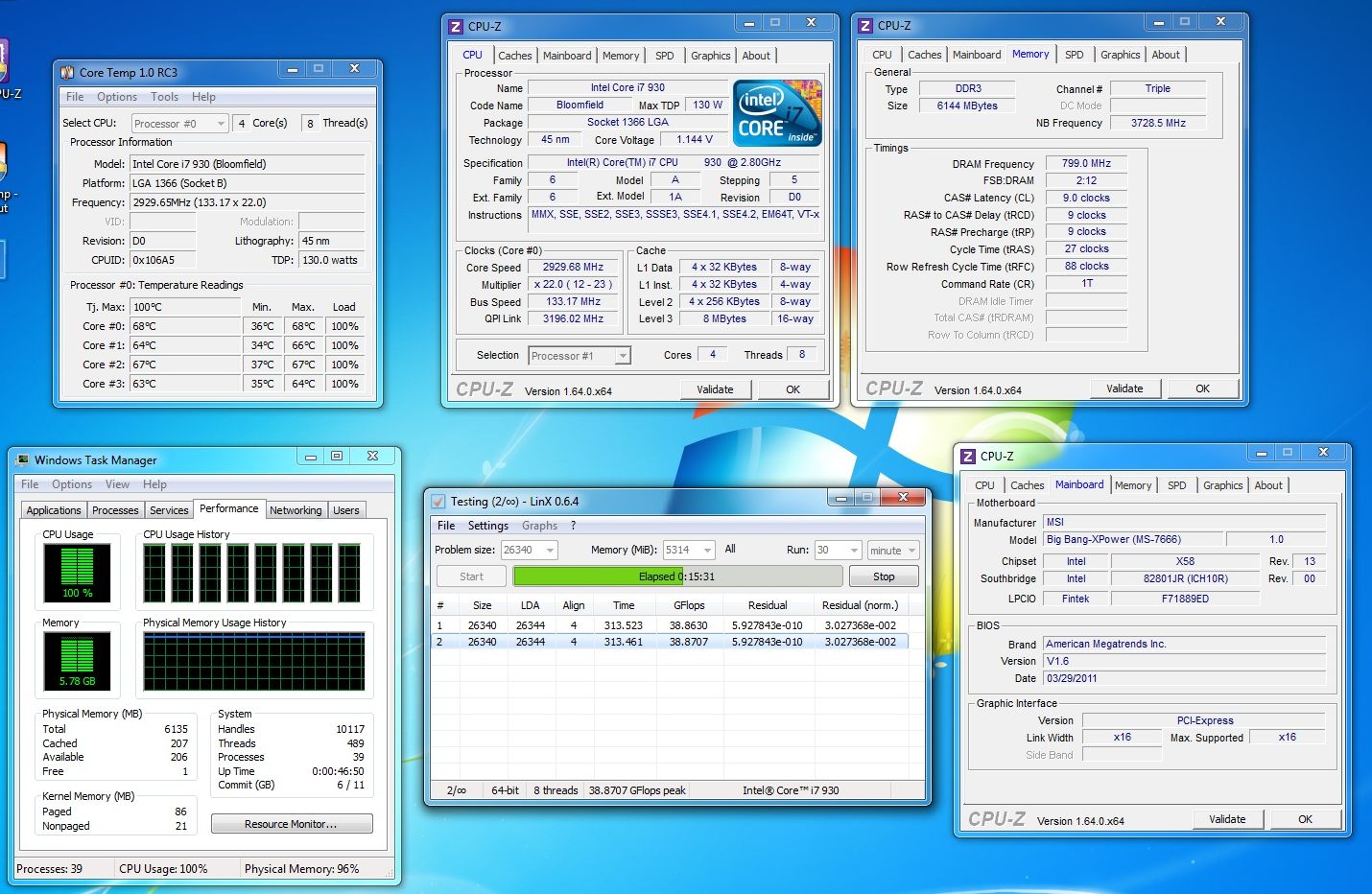 - Linpack 0.6.4 – Aplikasi yang kami gunakan untuk member beban kerja kepada prosesor. Dengan aplikasi ini, kami juga sekaligus membebani Memory Controller pada prosesor dengan mengatur agar Linpack memenuhi penggunaan memory sebanyak -banyaknya selama 30Menit.