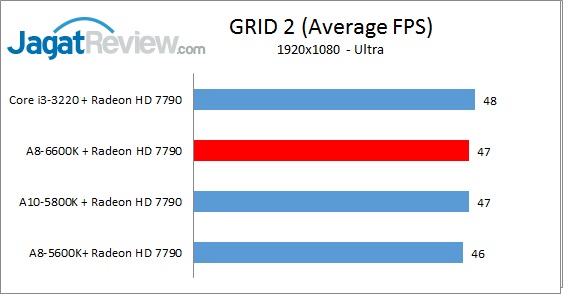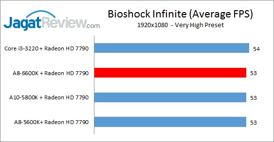 Seperti yang kami utarakan pada artikel sebelumnya, meski limitasi performa gaming dengan GPU add-on pada umumnya bergantung pada GPU yang digunakan, performa prosesor yang baik masih dibutuhkan untuk menangani berbagai ‘beban’ yang diberikan engine game yang sedang berjalan(contoh : in-game physics, AI, dsb). Pada pengujian berikut, kami menggunakan resolusi 1080p (1920×1080) dengan detail game diset menengah keatas. Bagaimana performa prosesor dari A8-6600K ketika dipasangkan dengan kartu grafis mainstream MSI Radeon HD 7790 1GB? Mari simak dibawah ini: