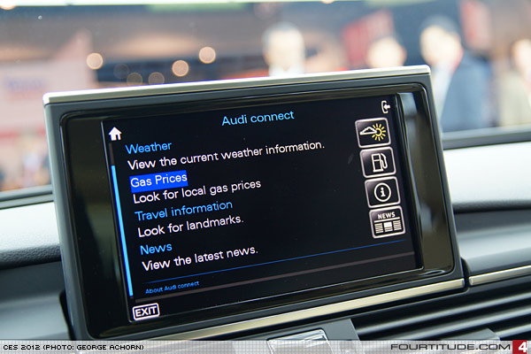 Selain itu, lanjut pihakya, mobil tersebut memiliki fungsi semacam penunjuk stasiun bahan bakar (SPBU). Ini memungkinkan pengguna dapat mengetahui jarak SPBU terdekat sekaligus informasi harga. Begitupun tentang informasi tempat parkir terdekat. Berbagai infomasi tempat tersebut dapat masuk ke sistem jaringan mobil Audi, asalkan area tersebut juga telah didukung 4G.