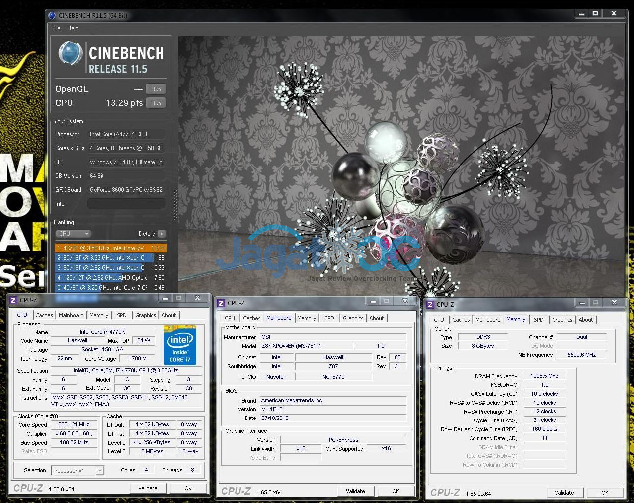 Cinebench R11.5 – 13.29 pts (Core i7-4770K @ 6031Mhz)