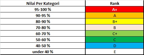 Pada setiap penjelasan watercooling(dari halaman 2 s/d 4), kami akan menyertakan penilaian individual kami terhadap tiap-tiap watercooling kit. Untuk memudahkan Anda membaca nilai-nilai individual tersebut, kami memberikan kode warna untuk nilai-nilai yang diraih, seperti yang bisa dilihat dibawah ini: