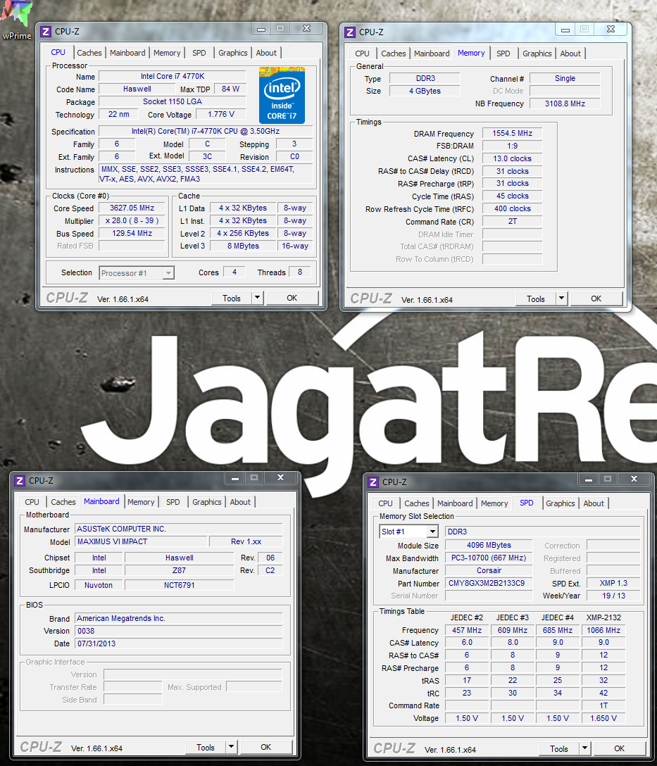 Pada AOCT 2013 Jabar, Asus Maximus VI Impact mendapat bagian untuk mencari Maximum CPU-Z Memory Clock. Karena itu, kami melakukan beberapa tes singkat untuk melihat skor seperti apa yang bisa dicapai olehnya nanti. Dalam test ini kami mendapatkan kesimpulan bahwa beberapa profile overclocking tersebut dapat dikategorikan aman untuk digunakan hanya dengan AIR Cooling system, walaupun kami tidak menggunakan Stock Cooling.
