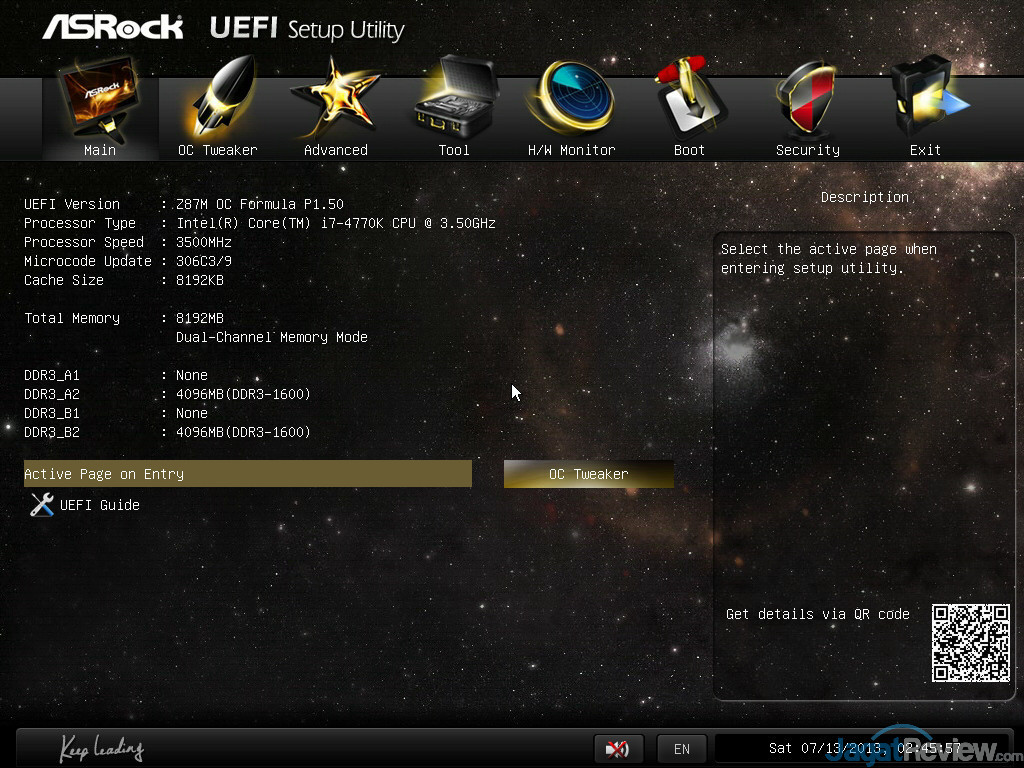 Berikut ini sekilas penampilan BIOS ASRock Z87M OC Formula