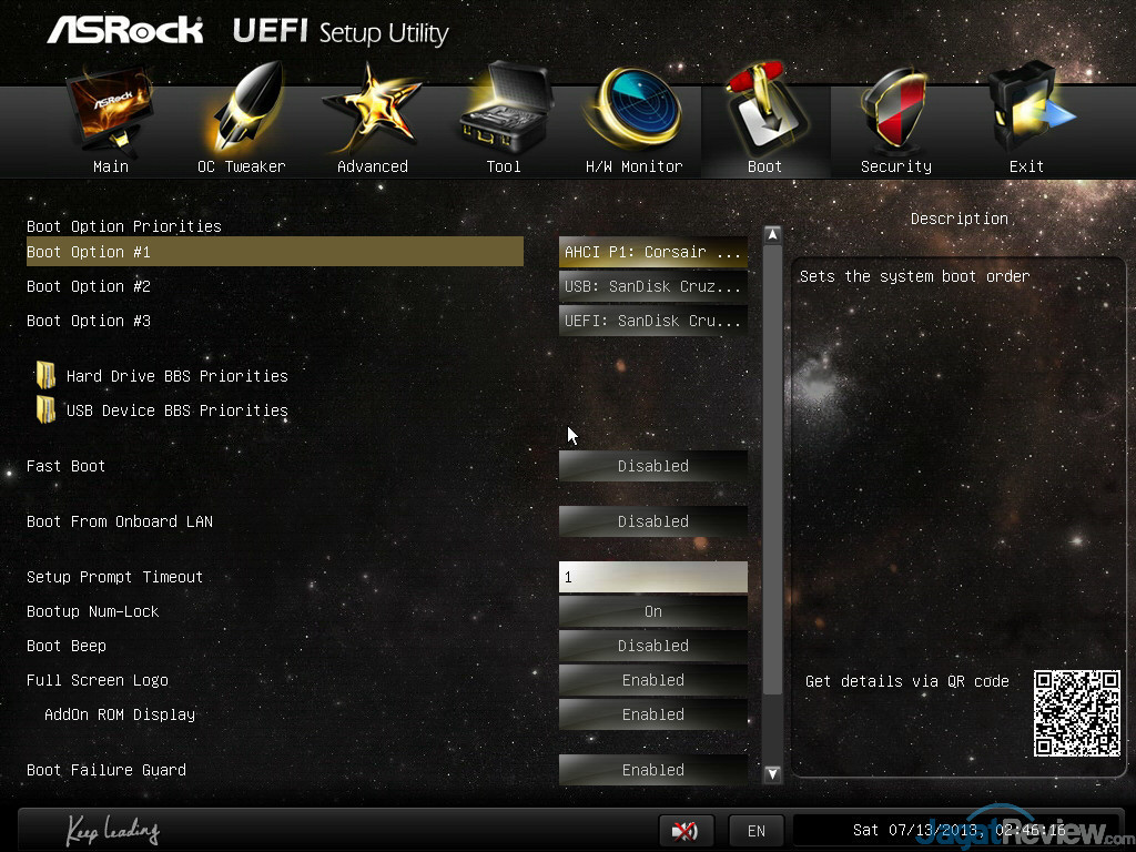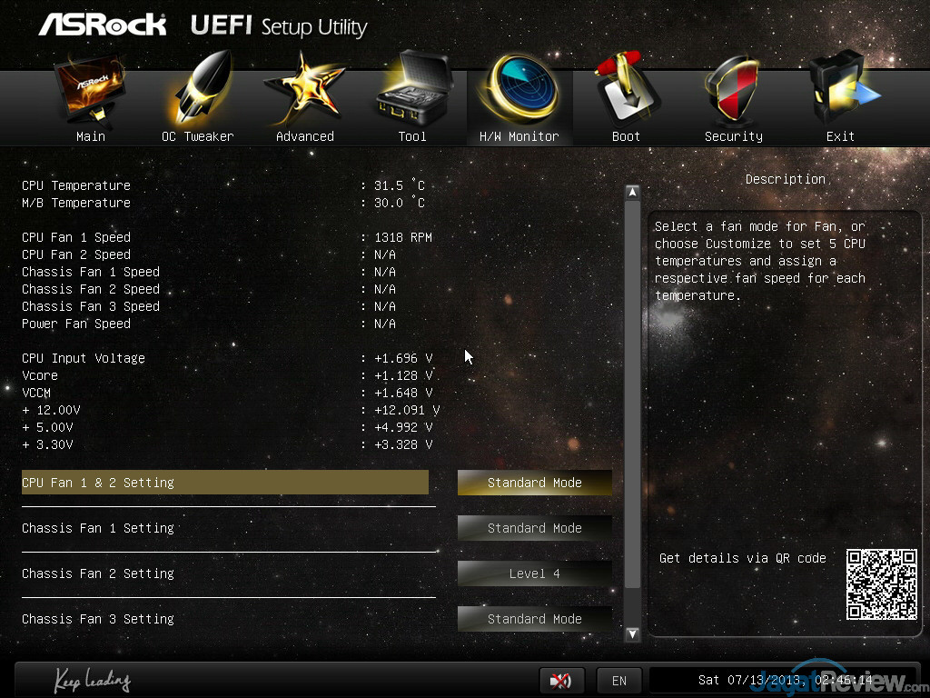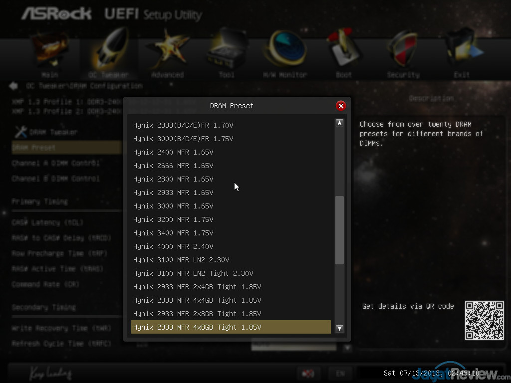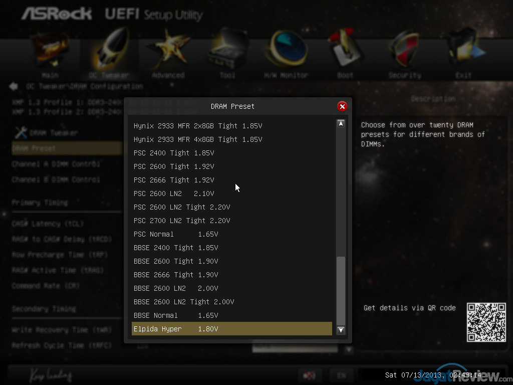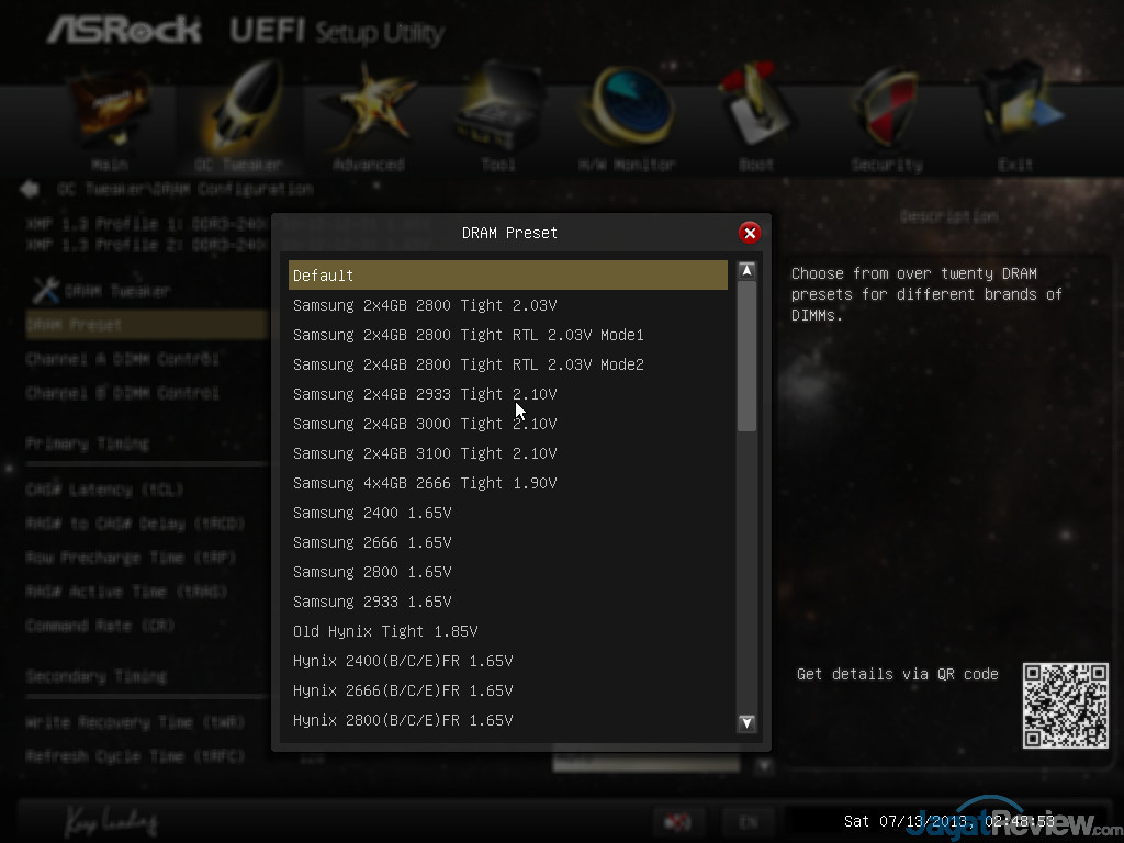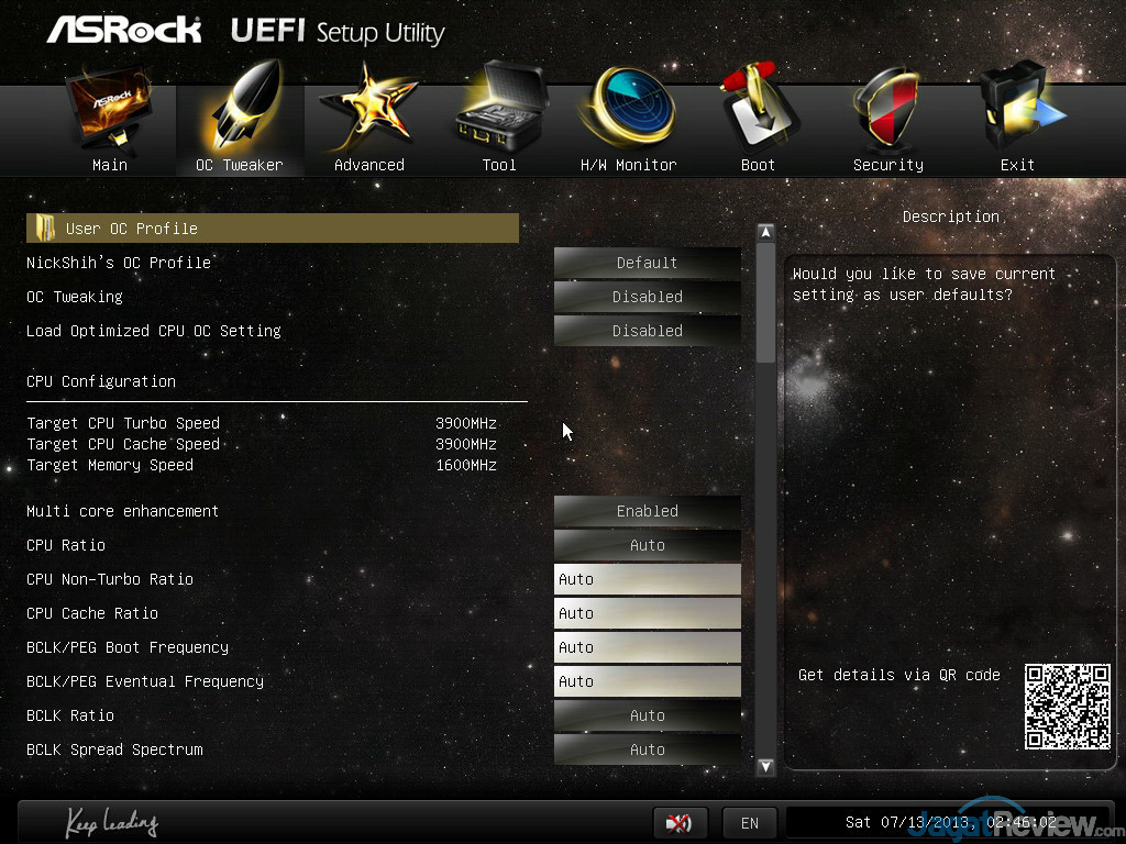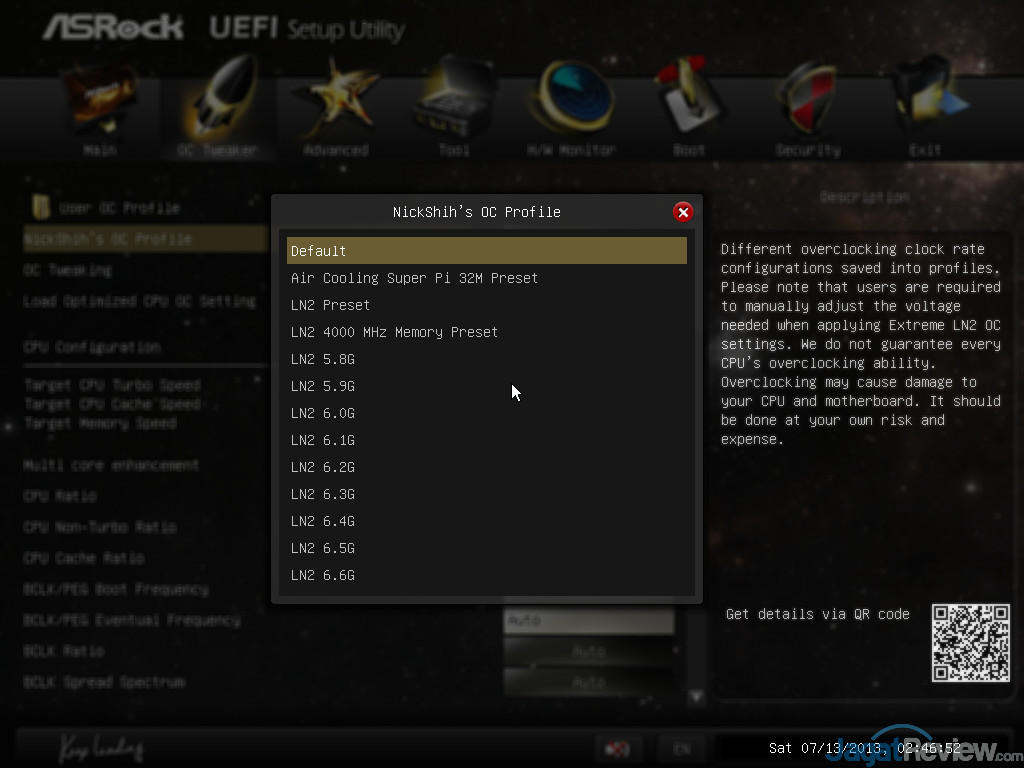 Seperti layaknya motherboard untuk overclocker, BIOS ASRock Z87M OC Formula lengkap dengan berbagai setting untuk melakukan tuning hingga maksimal. Bagi Anda yang masih ragu-ragu, ASRock bahkan menyediakan puluhan profil setting CPU dan juga Timing Memori, yang dibuat oleh salah satu legenda overclocking: Nick Shih.