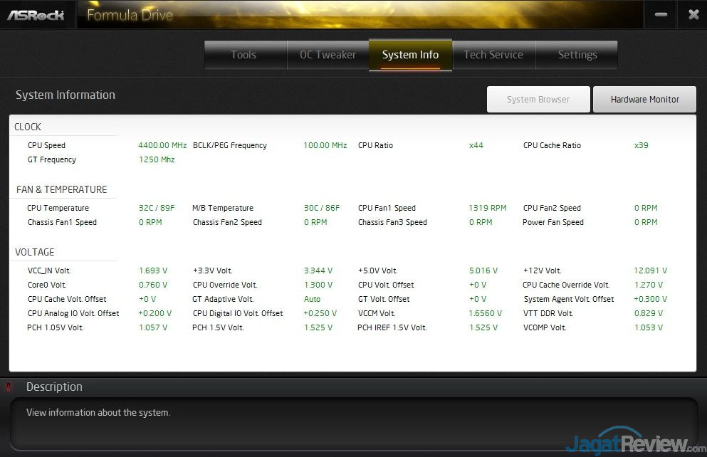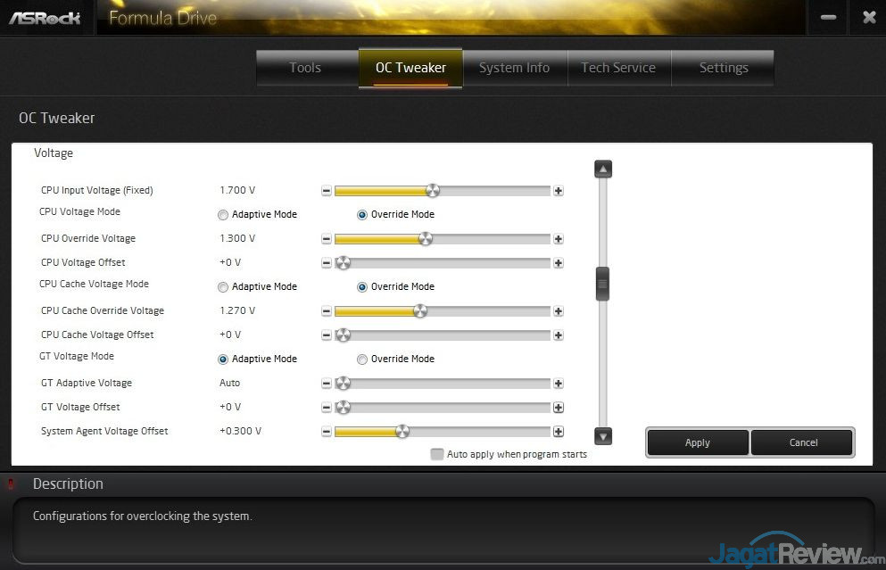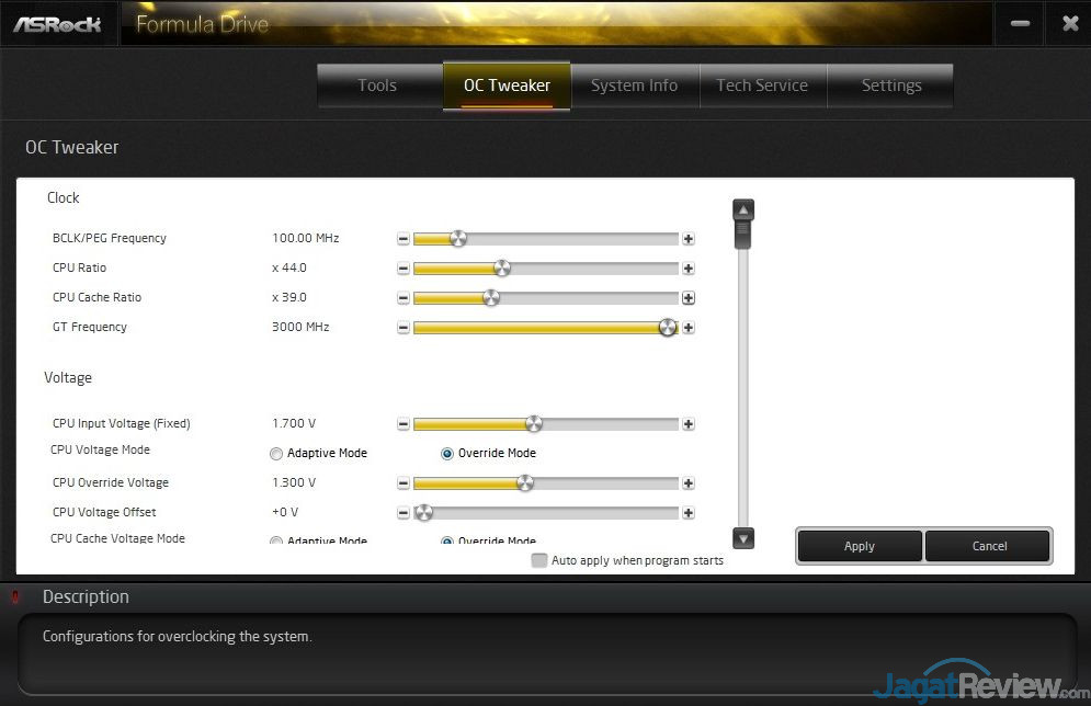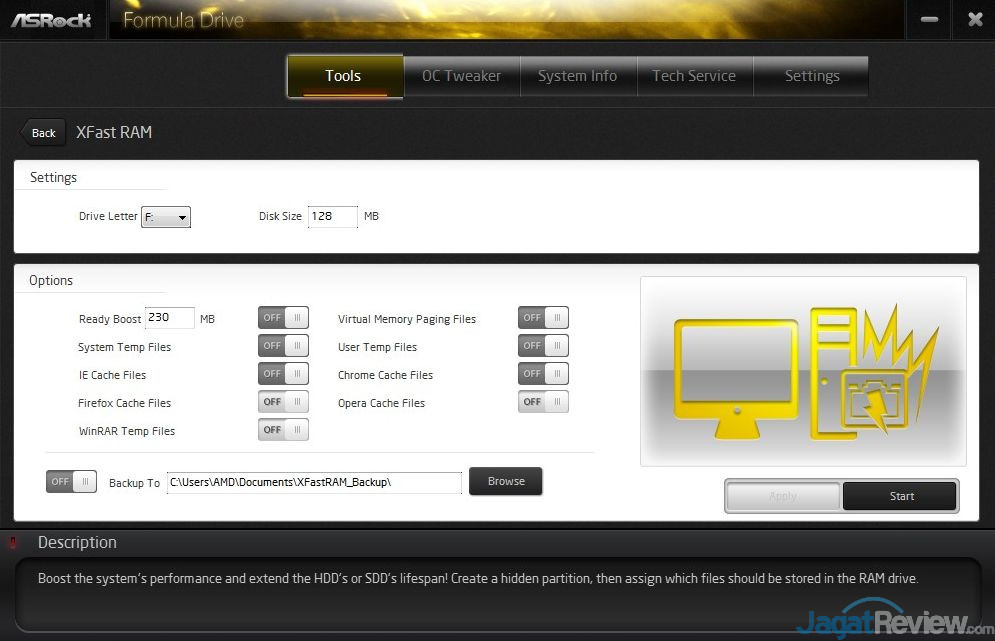 ASRock Formula Drive memberikan pengguna kemudahan untuk mensetting berbagai variabel sistem di dalam OS, CPU Multiplier, CPU BCLK, CPU Ring Frequency, dan masih banyak lagi. ASRock pun memberikan sebuah tambahan unik bernama XFast RAM yang merupakan sebuah software RAMDrive bagi Anda yang ingin mencoba memakai RAMDrive.