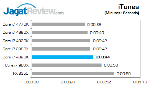 Salah satu operasi yang sering dilakukan oleh iTunes adalah merubah dari satu format lagu ke format lainnya. Dalam operasi yang biasa disebut encoding ini memanfaatkan kinerja single thread dari prosesor. Inilah yang membuat software ini menjadi salah satu acuan kinerja prosesor single thread dalam kondisi nyata.