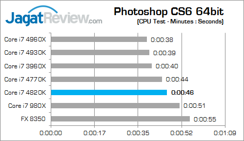 Aplikasi pengolah gambar populer ini ternyata mempertontonkan perbedaan performa sekitar 4% antara Core i7 4820K dan Core i7 4770K.