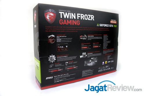 Tidak hanya graphics cardnya, ternyata desain box MSI GTX 760 Twin Frozr Gaming OC juga identik dengan seri GTX 780nya.