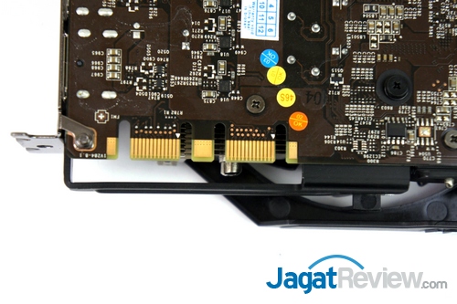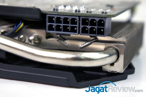 Pada sektor konektor daya, MSI tidak mengikuti standar dari NVIDIA dengan 2 konektor daya PCIE 6-pin. MSI menempatkan sebuah konektor daya 6-pin PCIE dan sebuah konektor daya 8-pin PCIE. Hal ini akan sangat membantu saat melakukan overclocking sehingga kecukupan daya selalu terpenuhi.