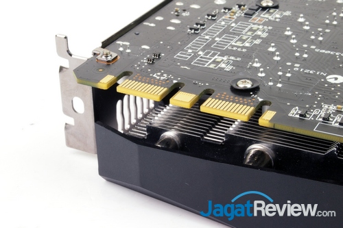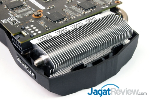 Sirip-sirip heatsink dari sistem pendingin DirectCU II yang digunakan oleh graphics card ini juga memiliki ukuran yang cukup tebal dan berjumlah cukup banyak. Heatsink berbahan aluminium ini tampak meyakinkan dapat mendinginkan graphics card ini secara optimal.