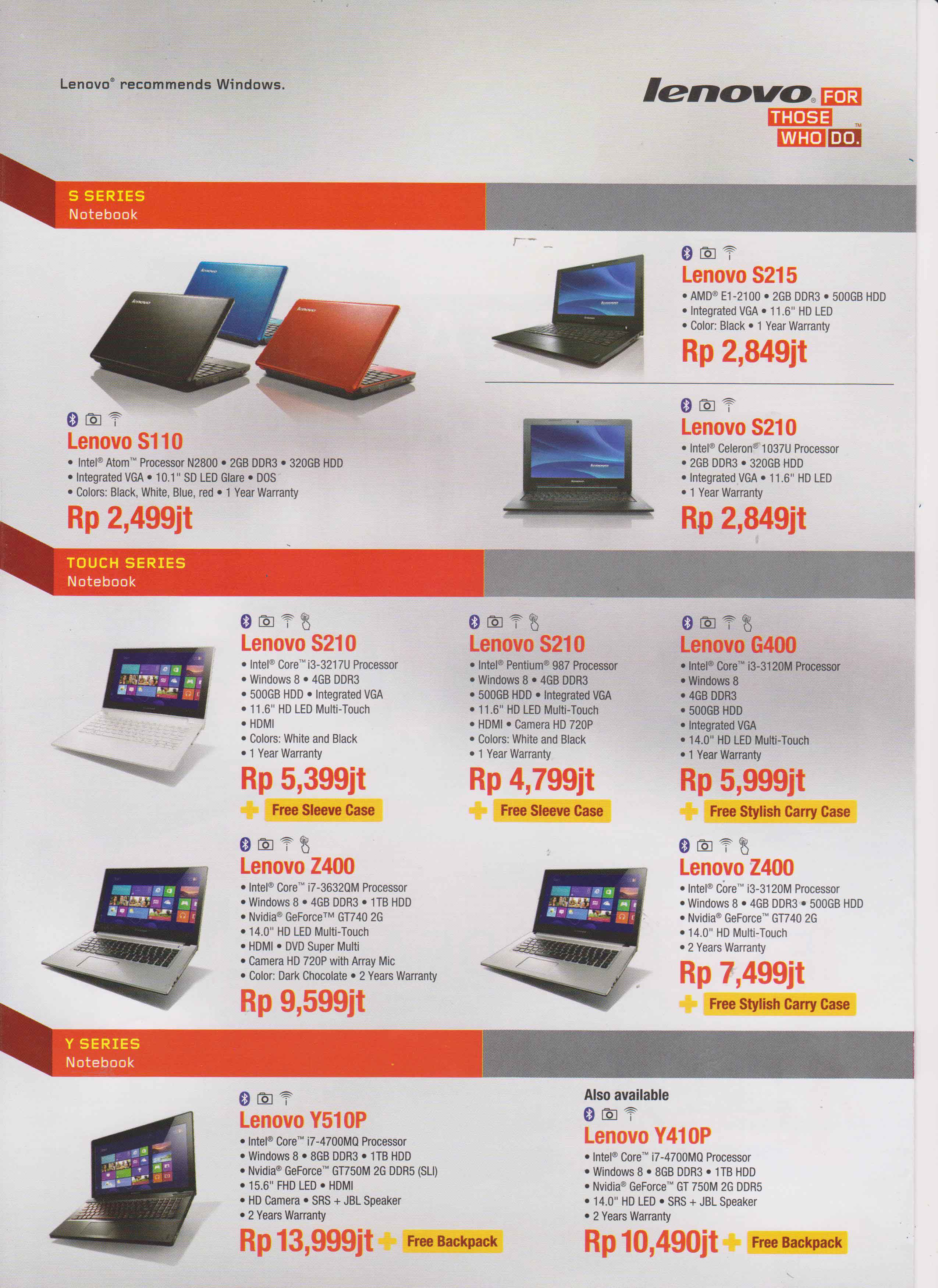- S410P Intel Core i3-4010U Rp 5.699.000 *Free Backpack