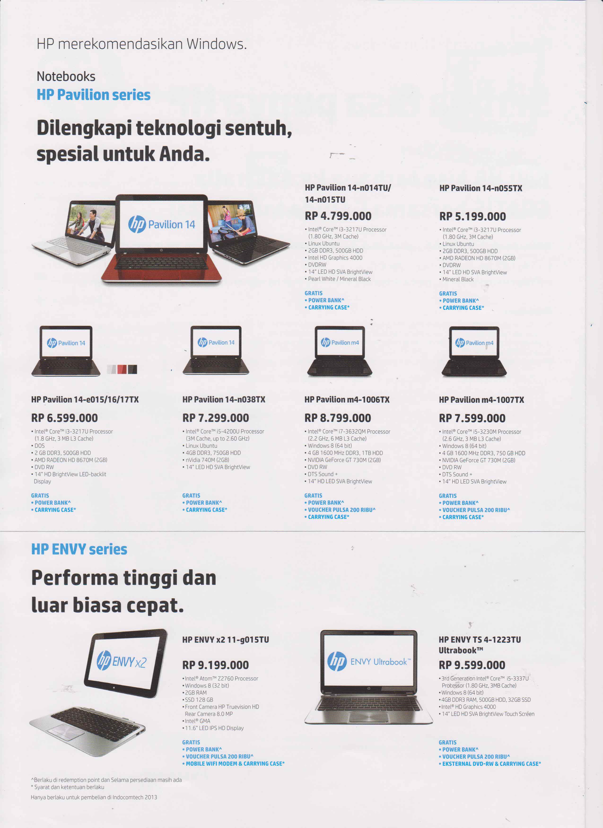 - Pavilion Sleekbook 14-b015TU/14-b039TU Rp 3.999.000 *Bonus senilai Rp 1.250.000 + Acc
