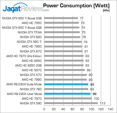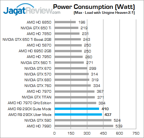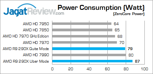 Apakah Anda terkejut dengan temperatur kerja Radeon R9 290X? Kami pun juga! Walaupun begitu, menurut pernyataan yang kami dapatkan dari pihak AMD, Radeon R9 290X memang dirancang untuk beroperasi dengan aman pada temperatur kerja seperti itu. Dengan temperatur kerja setinggi itu, dibutuhkan casing komputer dengan airflow maksimal agar udara panas di sekitar graphics card dapat dengan cepat dibuang keluar casing komputer.
