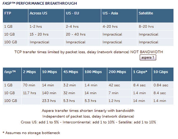 Teknologi Aspera yang dijuluki FASP itu mampu memotong lamanya waktu transfer file data 24GB ke seluruh dunia dari 26 jam yang biasanya melalui TCP (Transmission Control Protocol) menjadi kurang dari satu menit. Teknologi FASP itulah yang kemudian mengantarkan Aspera, memperoleh penghargaan Emmy Award dalam kategori “Outstanding Achievement in Engineering Development”.