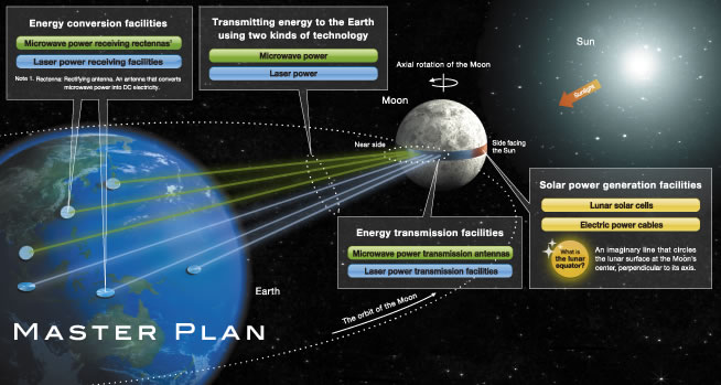 Proyek yang dinamakan Luna Ring ini bertujuan untuk mengambil tenaga dari Bulan layaknya tenaga Matahari dengan membangun sabuk sel solar mengelilingi ekuator Bulan yang sisinya selalu menghadap Bumi, di mana sabuk ini akan bertransmisi serta menyorot ke bumi. Selain akan mengeliminasi ketidakefisiensian tenaga diakibatkan cuaca buruk, tenaga yang dihasilkan dari Bulan ini juga mampu memberikan tenaga yang dibutuhkan selama 24/7, sehingga mampu memenuhi kebutuhan akan sumber tenaga yang aman dan bersih dari polusi untuk masyarakat.