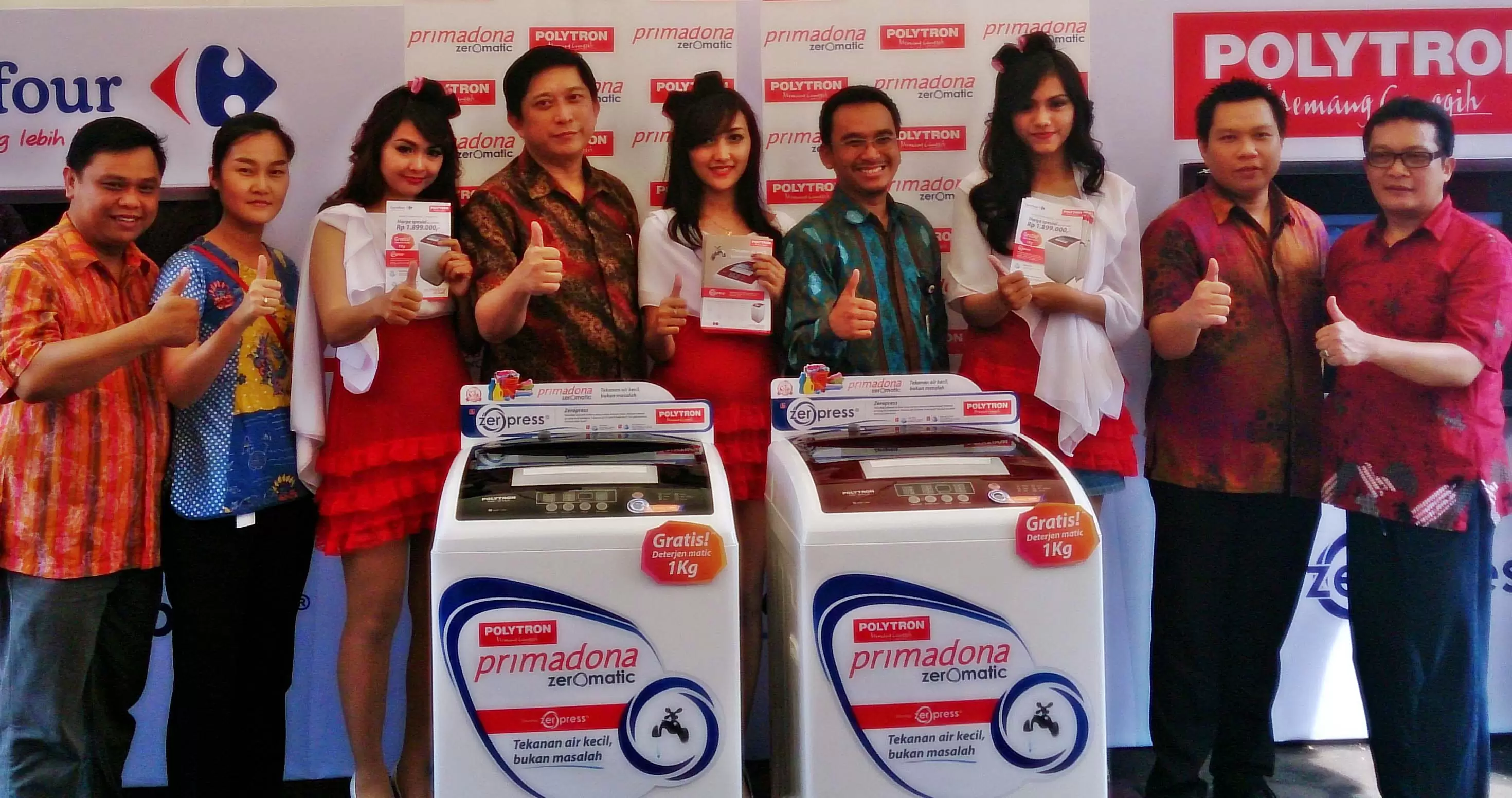 Pada peluncuran Mesin cuci Automatic Polytron ZERO Press, kali ini Polytron berkerjasama dengan Carrefour mempersembahkan hadiah langsung detergent matic 1 Kg untuk setiap pembelian mesin cuci Zero Press PAW 7010 yang berlaku diseluruh wilayah Indonesia, sedangkan promo harga Rp.1.899.000 untuk ukuran 7 kg hanya berlaku di pulau Jawa dan Bali saja”, kata Santo mengakhiri.