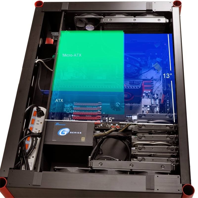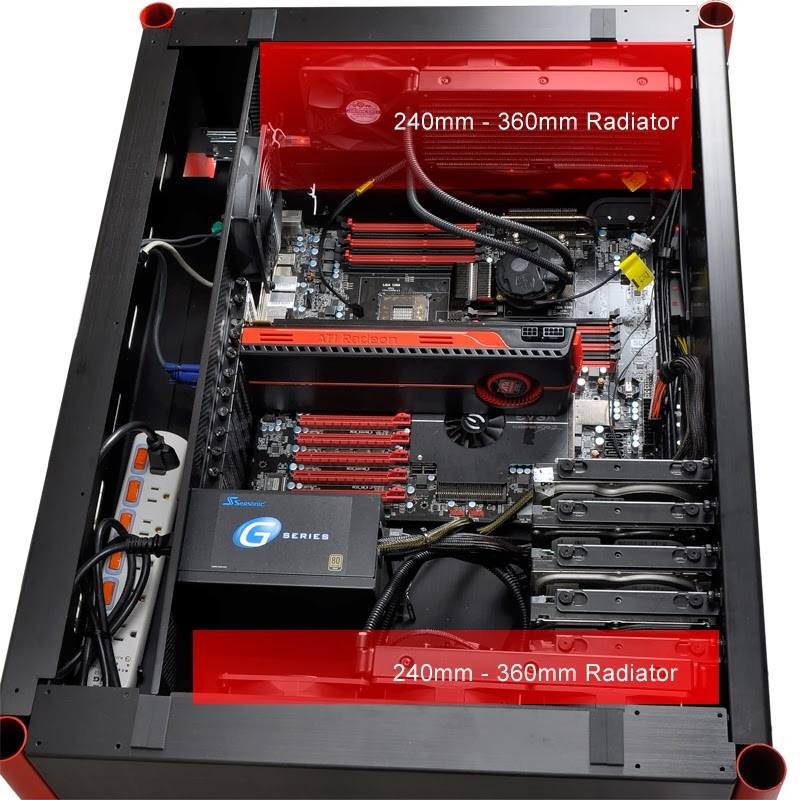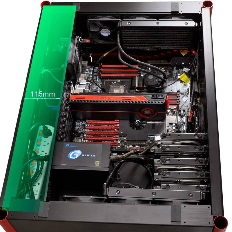 Bagian dalam Desk-Type Chassis dapat memuat berbagai form-factor motherboard, seperti EATX, XL-ATX, dan standard ATX motherboard. Chassis ini juga dirancang untuk memuat hingga 14 Hardisk 3.5″ yang dapat dilepas pasang untuk menambah kompatibilitas VGA dan Motherboard. Power Supply yang dapat dimuat di Chassis ini maksimal memiliki panjang 280 mm dan tinggi 180 mm. Airflow pun menjadi variable yang penting jika menggunakan casing, pada casing dengan kepadatan seperti ini Lian Li memberikan ruang bagian samping untuk Airflow. Pada bagian samping Anda dapat memuat hingga 6 buah 120 mm fan dan dapat Anda gabungkan dengan watercooling 120 mm (Single Radiator), 240 mm (Dual Radiator), dan 360 mm (Triple Radiator).