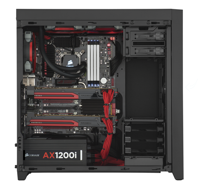 - Threetool-free 3.5”/2.5” combo bays in a modular hard drive cage, with two tool-free 2.5” drive bays behind the motherboard
