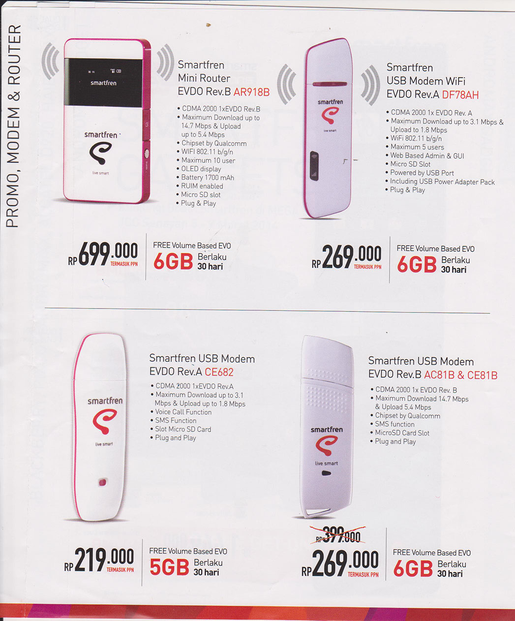 - Smartfren USB Modem EVDO Rev.A CE682 – Rp 219.000