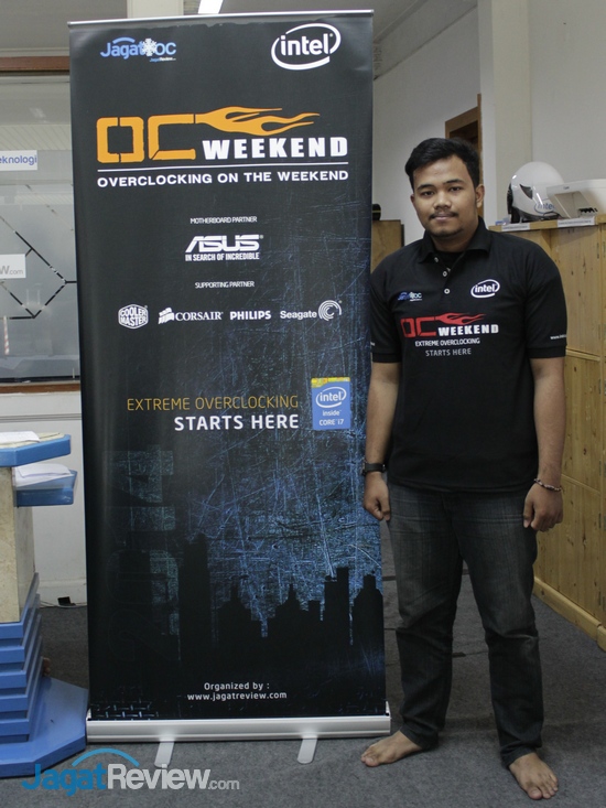 Peserta yang semula mendaftarkan diri untuk OC Weekend minggu pertama tetapi terpaksa menarik diri di menit-menit akhir ini akhirnya datang di minggu kedua. Overclocker dari tim juara kedua AOCT 2012 Nasional ini sudah memiliki pengalaman cukup banyak di dunia overclocking. Terbukti, ketika mengikuti sesi Pro OC di AOCT 2013 Nasional, dia berhasil menjadi juara 3 di salah satu sesi benchmark. Sekarang, dia ingin mencoba mendapatkan pengalaman baru di dunia overclocking dengan mencoba extreme overclocking.