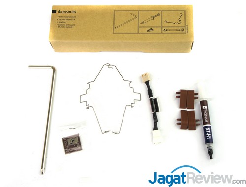 Paket penjualan dari heatsink tersebut sangat lengkap. Bahkan mereka mengelompokkan mounting serta aksesoris ke dalam boks-boks kecil, sehingga memudahkan user untuk memasang heatsink ini sesuai dengan sistem yang mereka punya.