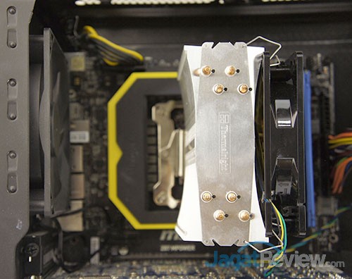 Skema pemasangan heatsink ini serupa dengan Aidos. Anda harus memasang mounting bracket terlebih dahulu , baru lalu mengencangkan heatsink ke motherboard sebelum memasang kipas. Berikut ini adalah hasil pemasangan Themis ke sistem: