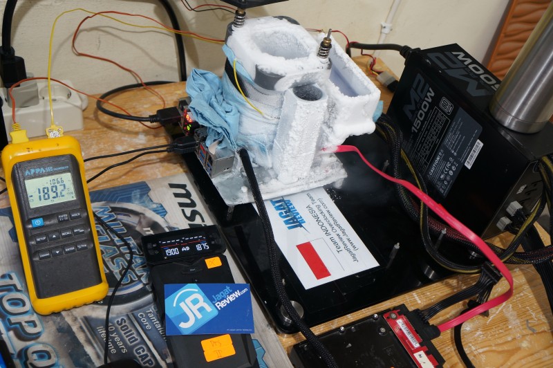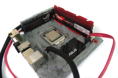 Untuk melakukan Extreme Overclocking, kami membutuhkan beberapa persiapan terlebih dahulu, misalnya saja insulasi pada seluruh bagian motherboard dengan art eraser/kneaded eraser untuk mencegah kondensasi. Karena ukuran Mini-ITX, suhu dingin dari LN2 container (pot) kami akan menyebar keseluruh bagian board, dan membuat proses insulasi sedikit lebih rumit dari biasanya, dan harus dilakukan pada seluruh board. Beginilah hasil insulasi motherboard ASUS Maximus VI Impact yang kami lakukan: