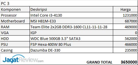 Catatan berikutnya adalah ingat bahwa standar ’50 FPS minimum’, kami buat berdasarkan perbincangan kami dengan beberapa pemain DotA 2. Anda bisa saja memiliki tingkat toleransi framerate yang berbeda dengan standar kami, karena persepsi FPS yang nyaman akan sangat berbeda pada tiap individu. Ada beberapa gamer yang masih tidak merasa game-nya tersendat pada tingkat FPS rendah seperti 30 FPS sekalipun! Bagi Anda yang tidak masalah bermain dengan FPS agak rendah (30-an) ini, tentunya bisa membangun PC yang lebih murah lagi dengan berbasis Pentium G3220 tanpa GPU add-on, atau APU A6-5400K tanpa gpu add-on.