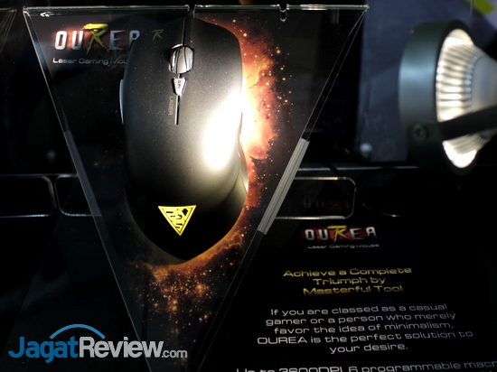 GAMDIAS juga memamerkan Ourea Laser Gaming Mouse, mouse laser dengan resolusi sensor hingga 3600 dpi. Mouse ini memiliki scroll wheel yang dilengkapi dengan LED dan dapat diubah warnanya melalui software yang tersedia, serta mendukung hingga 16k warna.