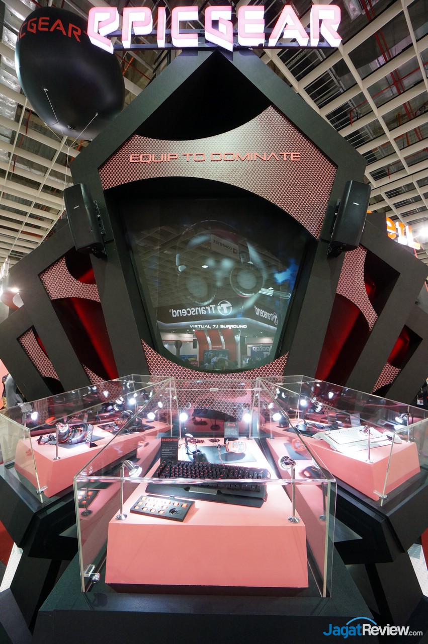 Pada bagian depan booth, GEIL memamerkan produk-produk gaming equipment mereka yang baru saja dirilis. Keyboard, mouse dan headset gaming ini dibanderol dalam seri produk “EpicGear”.