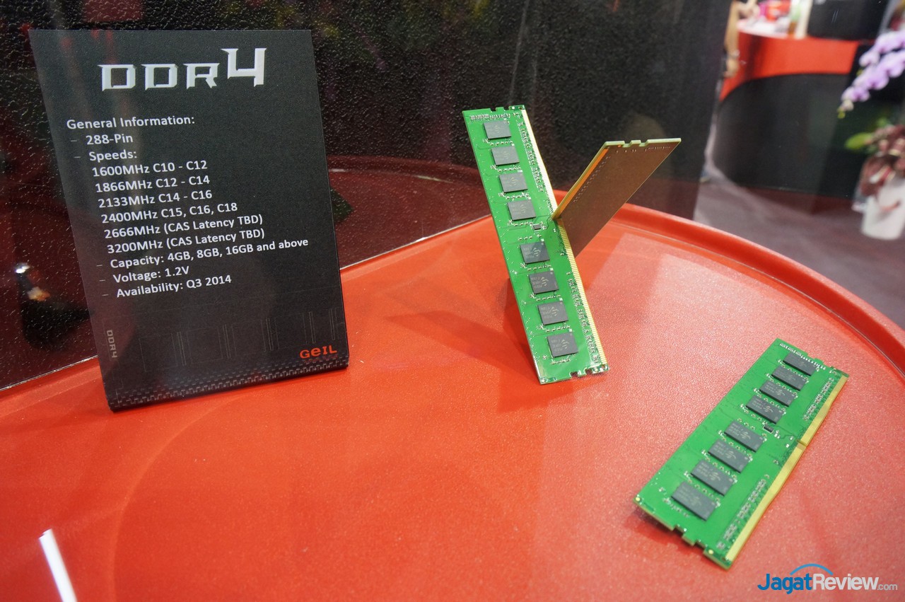 Didalam booth ini kami juga dapat melihat prototipe memori RAM DDR4 milik GEIL. Uniknya, pada Computex ini, pihak GEIL sudah merilis spesifikasi jajaran memori RAM DDR4 yang direncanakan rilis pada kuartal 3 atau 4 tahun 2014 mendatang.