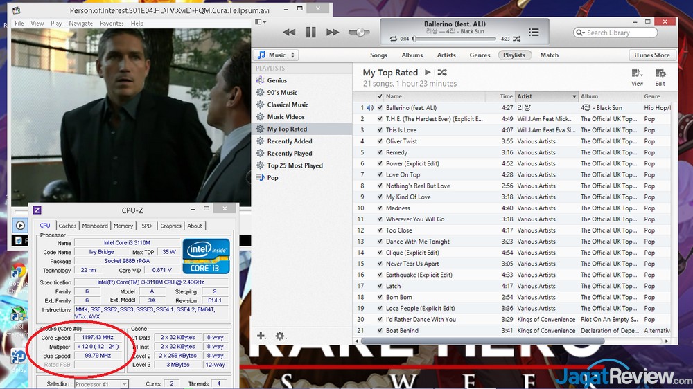 Dan hasilnya? Voila, prosesor Anda sekarang akan berjalan di clock paling rendah yang dapat Anda gunakan. Kami pun mencoba menggunaannya untuk menonton film dan mendengarkan lagu secara bersamaan.