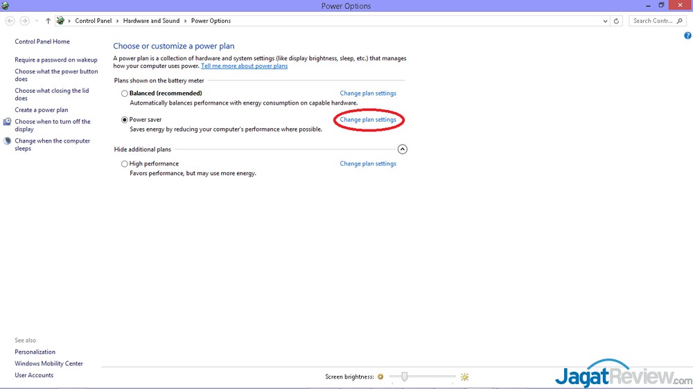 Setelah itu klik “Change Power Setting” pada profile yang Anda gunakan. Di sini kami menggunakan “Power Saver” untuk lebih menghemat baterai seiring penggunaannya.