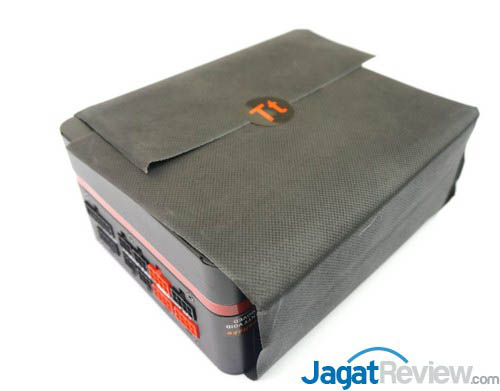 Thermaltake membungkus PSU nya dengan sehelai kain, menambah kesan elegan pada paket penjualannya.