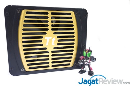 PSU tersebut terlihat minimalis, dengan warna emas di bagian fan grill dan juga bar merah yang terdapat di samping PSU.
