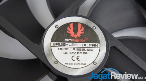 Di tempat kipas di bagian belakang casing, BitFenix telah memasangkan sebuah kipas 12 cm untuk sirkulasi udara di dalam casing. Sayangnya, hanya itulah satu-satunya kipas yang disediakan BitFenix untuk casing tersebut. Hanya adanya 1 kipas saja tentu akan membuat pengguna sulit mendapatkan airflow yang baik di casing ini.