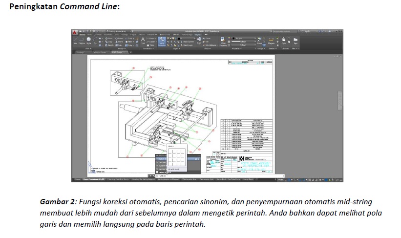 Peningkatan Command Line: Perangkat fungsi Command pada AutoCAD 2015 versi terbaru mampu menyelesaikan kendala kesalahan pengetikan bagi pengguna dalam jangka waktu lama yang mengakses fungsi command melalui ketikan tangan. Dengan fungsi AutoCorrect terbaru, program ini akan secara