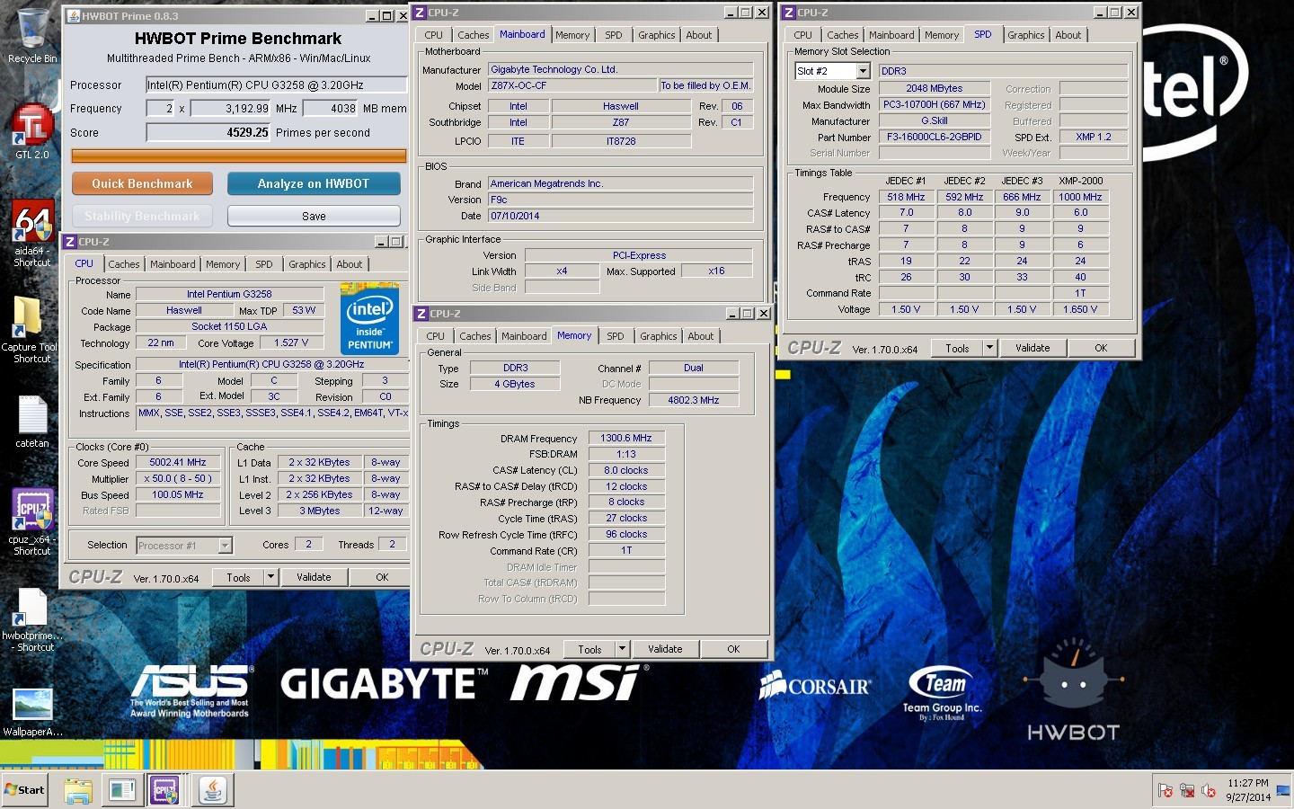 Untuk stage HWBOT Prime dengan motherboard Gigabyte, overclocker asal Jakarta, IvanCupa, berhasil menjadi yang terbaik dengan catatan 4529.25. Posisi kedua ditempati oleh aruka, overclocker asal Yogyakarta, dengan 4509.29. Catatan skor dari kedua overclocker tersebut bisa dilihat di screenshot di bawah ini: