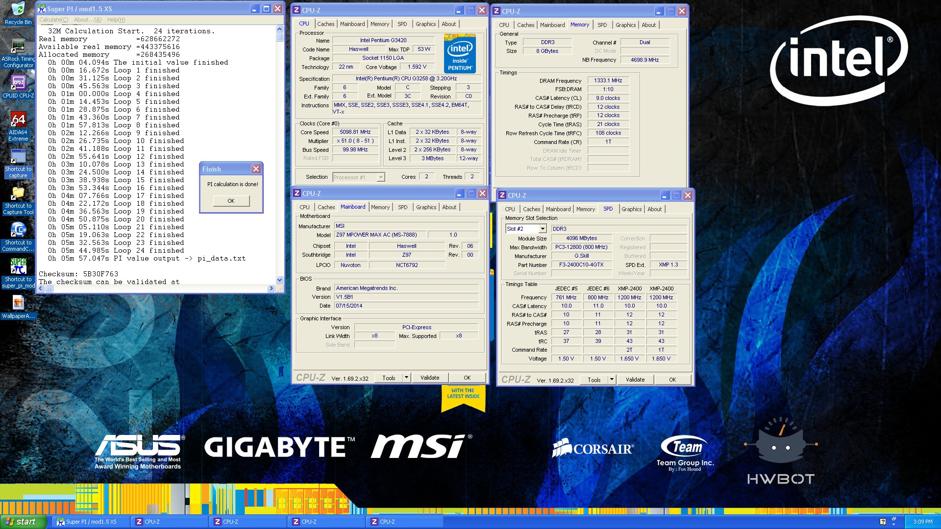Stage SuperPi 32M di motherboard MSI ini sebenarnya dikuasai oleh overclocker yang sama dengan stage HWBOT Prime, yaitu IvanCupa dengan catatan 5 menit 57.047 detik. Sayangnya, karena peraturan turnamen yang memperbolehkan 1 overclocker menjuarai hanya 1 stage saja, maka terpaksa catatan waktu dari overclocker tersebut dianulir.