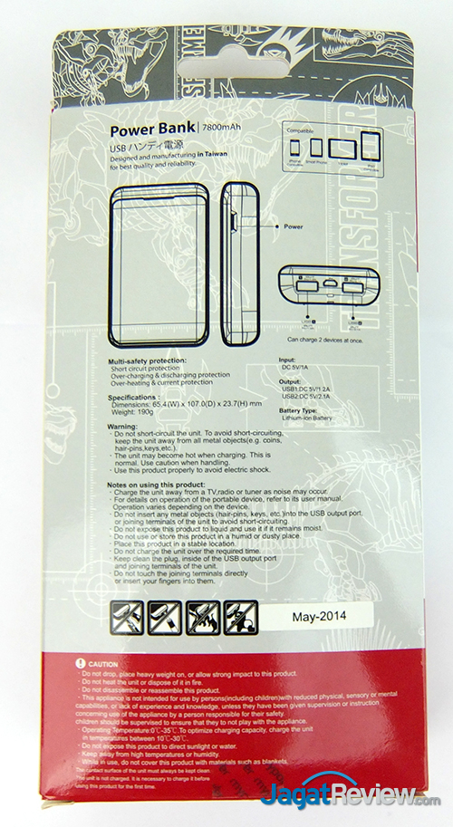 Tidak jauh berbeda dengan Power Bank Probox 5200mAh, Probox 7800mAh ini juga mengusung desain Transformers. Yang membedakan antara kedua power bank ini adalah ukuran serta desain gambar yang ditampilkan. Jika Power Bank Probox 5200mAh yang kami uji memiliki desain kuning dengan gambar Bumblebee, Power Bank Probox 7800mAh ini memiliki tampilan lebih “sangar” dengan gambar Optimus Prime serta bernuansa biru.