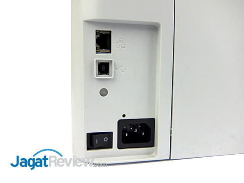 Port yang disediakan Samsung Printer Xpress C1810W terdiri dari port USB, LAN, serta input power. Tombol power untuk menghidupkan printer ini pun juga berada di lokasi ketiga port tersebut.