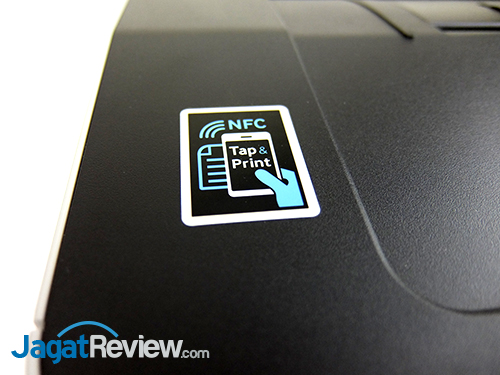 Pada bagian kanan permukaan printer, terdapat panel kontrol beserta layar LCD. Sementara di bagian kiri terdapat tempat untuk menggunakan fitur NFC.