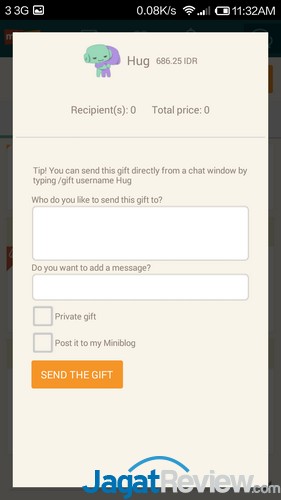 Sesama pengguna migme dapat saling memberikan gifts, seperti salah satunya stiker menarik yang dapat langsung digunakan.