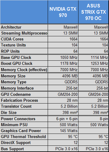 Namun, untuk graphics card STRIX GTX 970 OC tersebut, base clock default GPU sebesar 1114 MHz atau 12% lebih tinggi di atas nilai base clock GPU GeForce GTX 970 reference. Tentu saja nilai clok GPU dapat naik lebih tinggi lagi hingga mencapai 1253 MHz berkat teknologi GPU Boost 2.0. Untuk clock memori, Asus tetap mengikuti spesifikasi GeForce GTX 970 reference yaitu 7000 MHz.