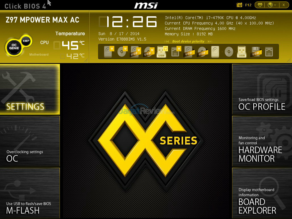 Berikut ini tampilan dari UEFI BIOS MSI Z97 MPOWER MAX: