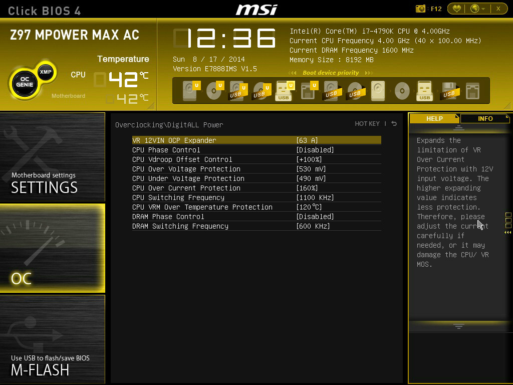 Tentu, motherboard khusus overclocking seperti Z97 MPOWER MAX pastinya memiliki opsi BIOS yang menyediakan tuning sangat lengkap. Berikut isi bagian overclocking dari Z97 MPOWER MAX secara mendetail:
