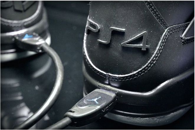 Baru-baru ini perusahaan desainer sepatu khusus, FreakerSneaks, menggabungkan dua nama besar yaitu Air Jordan dan PlayStation 4. Ide ini adalah hasil karya desainer kenamaan asal Inggris, Jonny Barry, yang kebetulan juga seorang fans Sony. Dalam interview, desainer tersebut mengatakan mulai terinspirasi untuk membuat sepatu bertema PS4 di saat console tersebut dirilis tahun lalu.